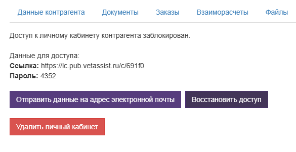 Передайте представителю контрагента ссылку и пароль для доступа в личный кабинет.